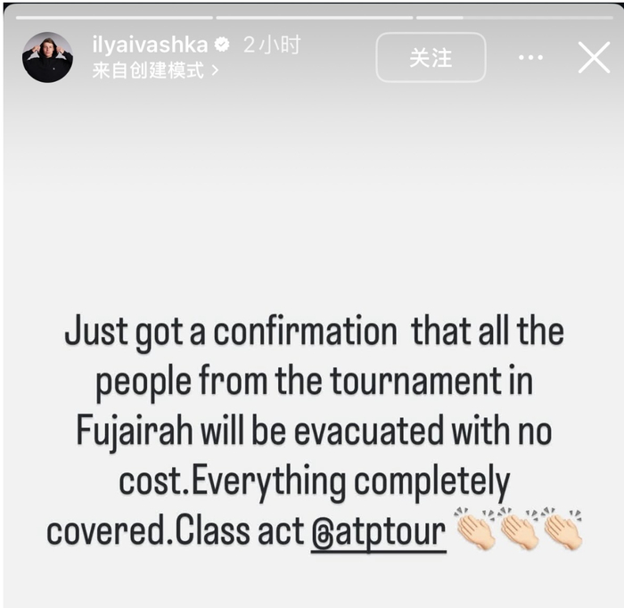 “刚收到确认,所有在富吉拉赛事的人员都将被免费撤离,所有费用由ATP完全承担,这波操作太赞了。” 伊利亚·伊瓦什卡在说这番话的时候非常开心,还刻意对ATP这么做送上了掌声。